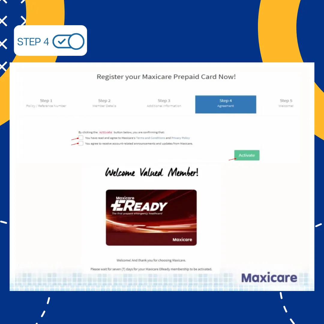 Visit theOnline Card Registration Page: memberviewpoint.maxicare.com.ph. Enter the reference number that you’ll receive by email after purchaseProvide the required personal details and click “Submit”Once successfully registered, you will receive an email together with your Maxicare LifesavER electronic card (eCard) within 24 hoursYour membership will be activated 15 days after successful registration.