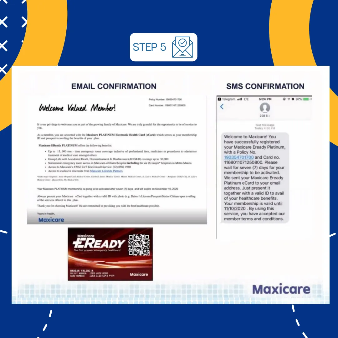 Enter the reference number that you’ll receive by email after purchaseProvide the required personal details and click “Submit”Once successfully registered, you will receive an an email together with your Maxicare LifesavER+ electronic card (eCard) within 24 hoursYour membership will be activated 15 days after successful registration.